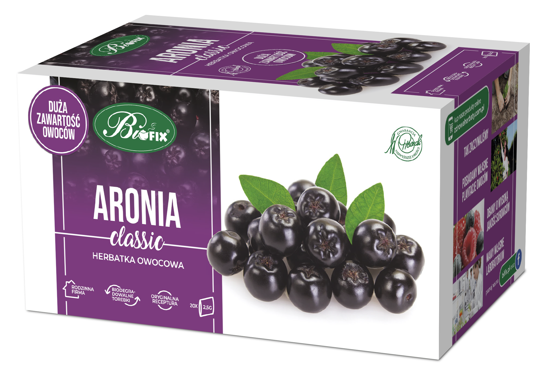 Herbata Bi-Fix Classic aronia / 25 torebek![]() - herbatki Bi Fix Classic posiadajÄ… najwiÄ™kszÄ… zawartość owoców pochodzÄ…cych z rodzinnych plantacji producenta - 20 torebek w opakowaniu